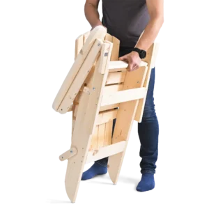 Zložljiv stol je izdelan iz visokokakovostnega lesa: smreka zagotavlja lahkotnost, iroko trpežnost in bogat odtenek, macesen odpornost na vremenske vplive, medtem ko samba navduši z gladko teksturo in prefinjenim videzom. Njegova ergonomska oblika ponuja izjemno udobje, naravna estetika lesa pa prostoru doda eleganco in toplino.